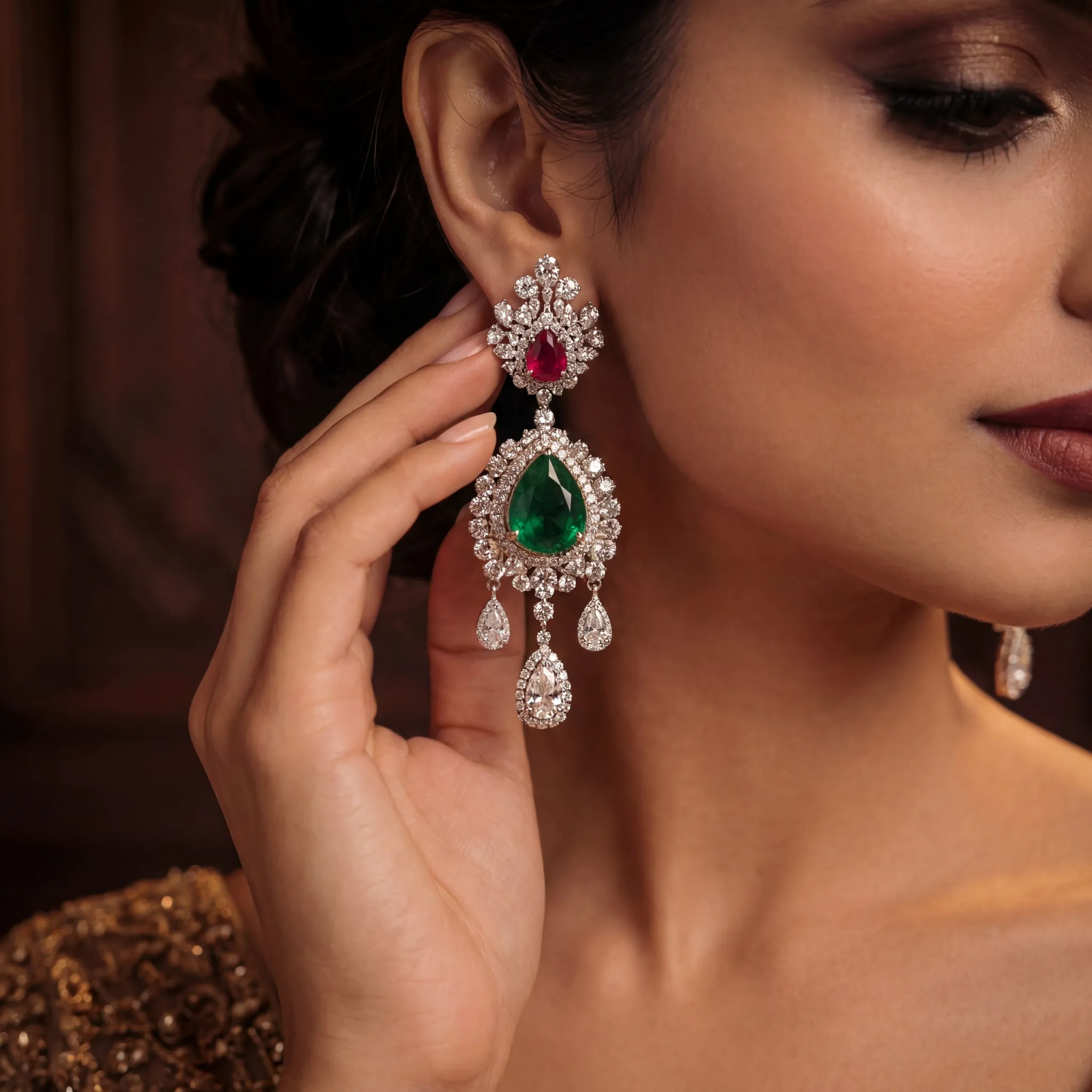Imperial poise. A platinum convergence of emerald, ruby, and light.