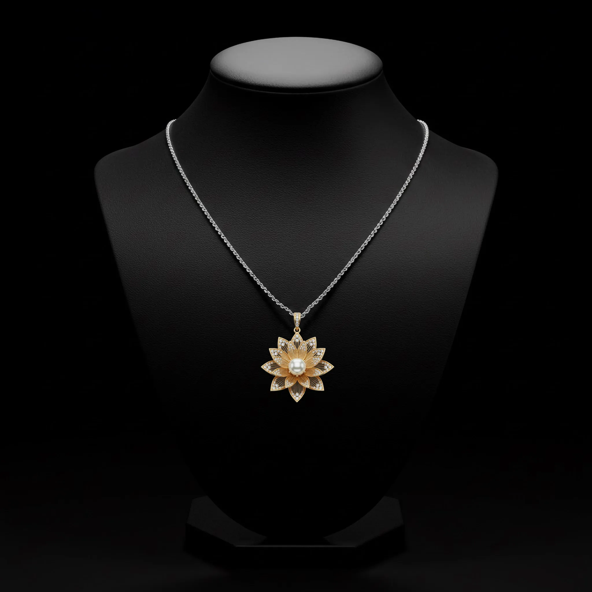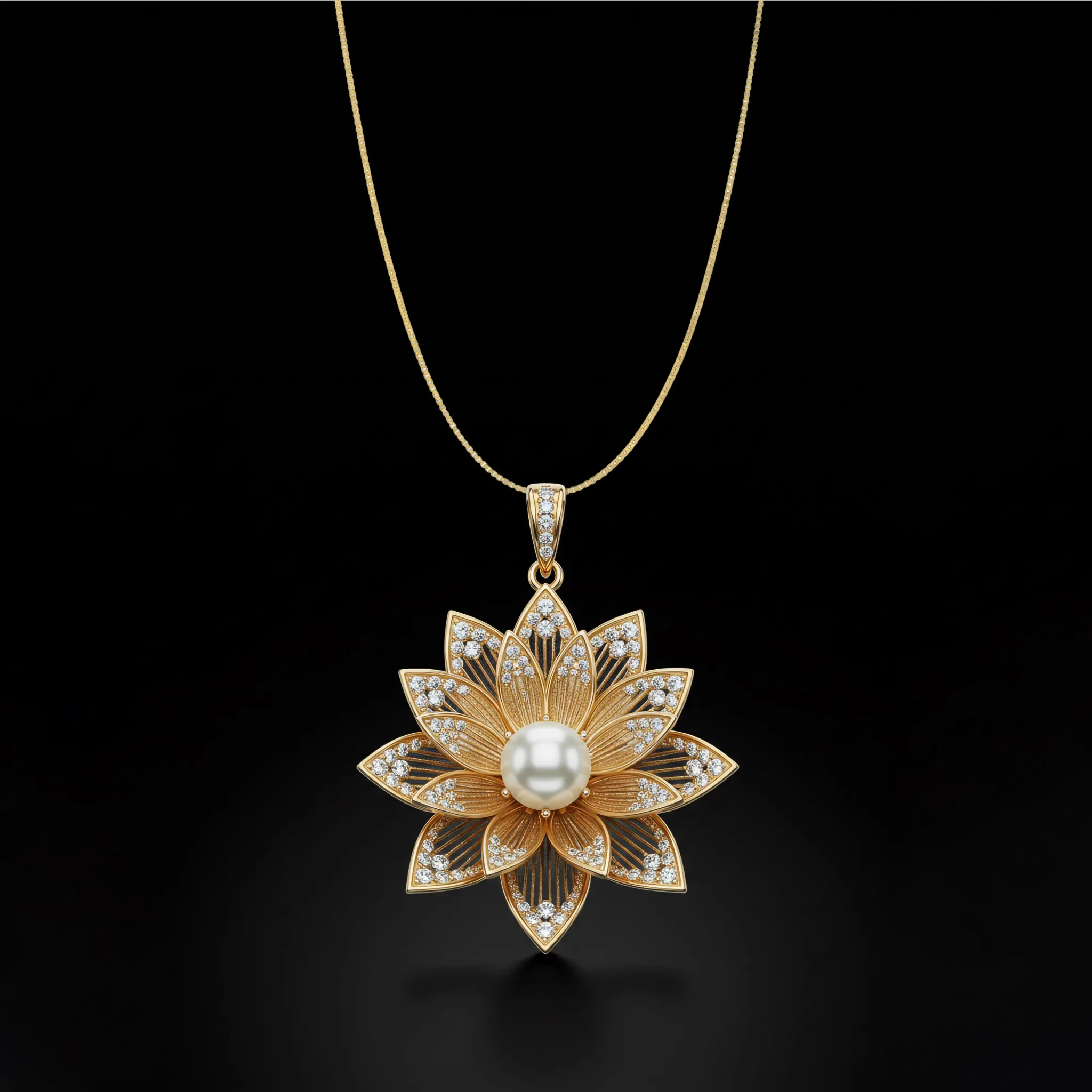 The Eterna Lotus Royale is a rigorous architectural interpretation of the bloomed lotus. Cast in 18k gold, the design centers a luminous pearl framed by precision-set diamonds, streamlining organic complexity into a disciplined statement of modern grace. This piece functions as a sculptural centerpiece, engineered for the discerning collector who values structural refinement and understated prestige.