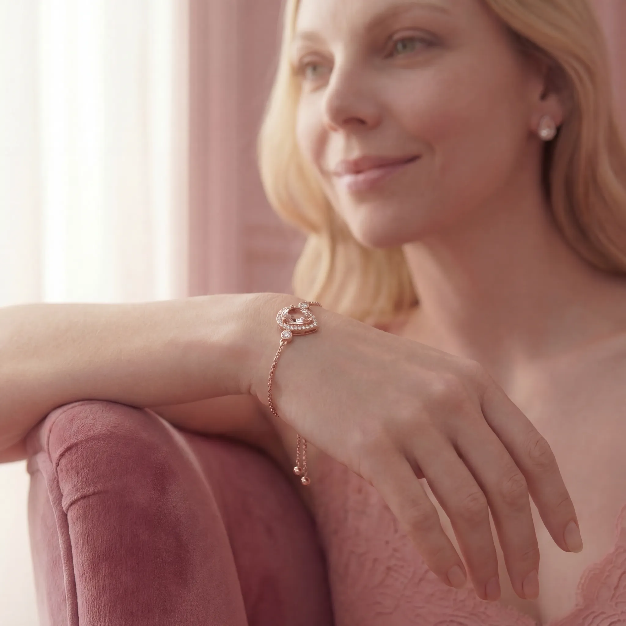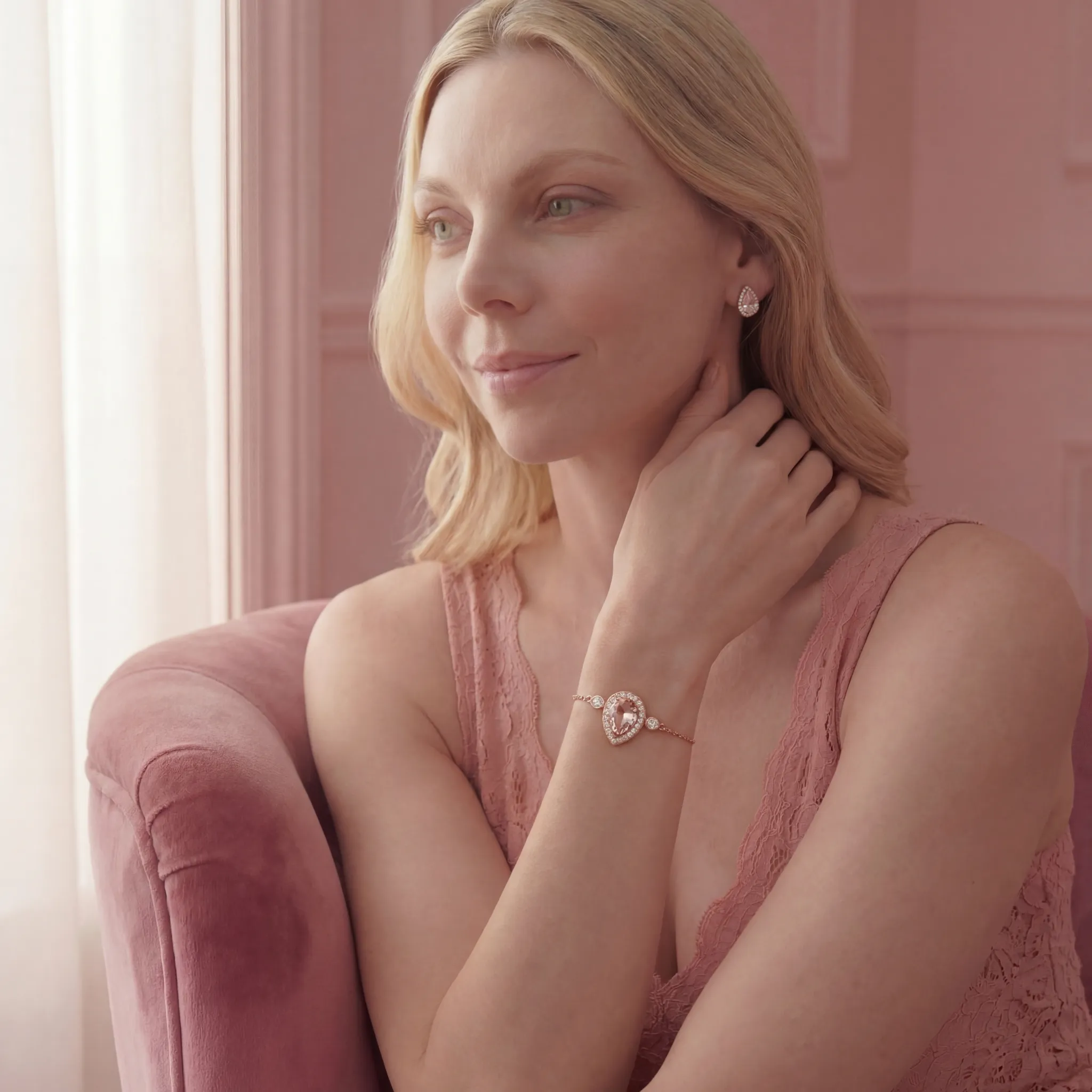 The Eternal Thread Bracelet interprets the Velvet line through an ultra-thin 18k rose gold filament. Designed to mimic a delicate thread, the piece balances the warmth of rose gold with the clarity of peach-pink morganites and brilliant diamonds. This minimalist silhouette prioritizes lightness and absolute elegance, serving as a subtle signifier of an unbreakable bond. It is an exercise in restraint for the modern collector.