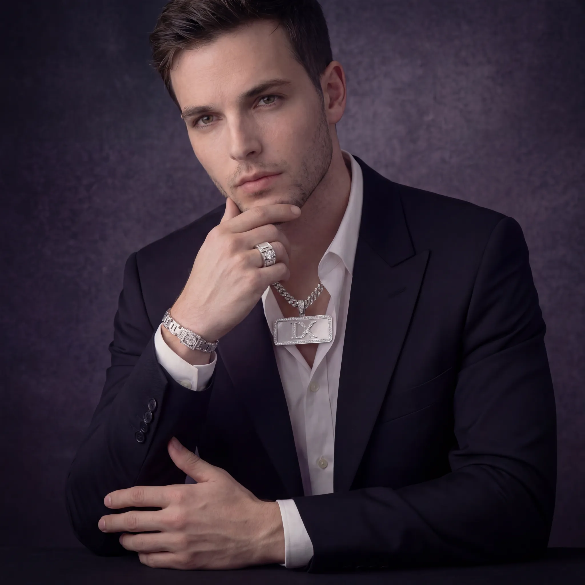 The Monogram Plate Pendant is the definitive hallmark of the LX series. Forged in solid 18k white gold, the architecture features the signature series insignia encrusted with precision-set diamonds. This piece functions as a high-jewelry identifier, balancing a bold geometric silhouette with the refined restraint of minimalist design. It is engineered for the individual who demands a recognizable yet sophisticated signature of luxury.